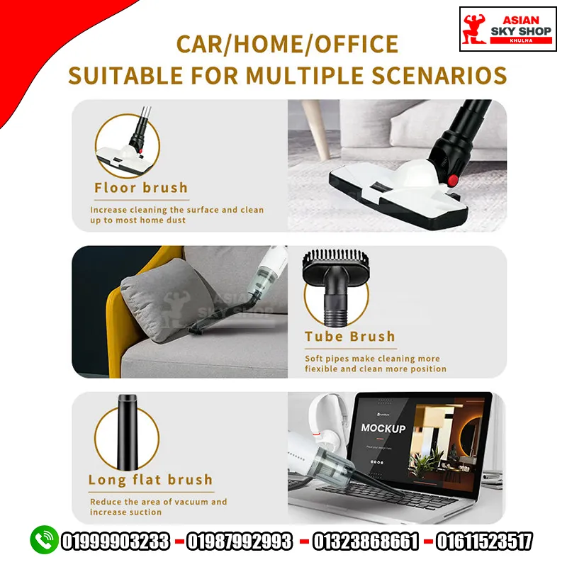ঘর, অফিস বা গাড়ি—সব জায়গার ধুলোবালি এক নিমেষে পরিষ্কার করতে চান? Asian Sky Shop Khulna নিয়ে এসেছে অত্যাধুনিক SR-133 Multifunction Wireless Vacuum Cleaner। এটি শুধুমাত্র একটি ভ্যাকিউম ক্লিনার নয়, এটি আপনার সম্পূর্ণ বাড়ি এবং গাড়ি পরিষ্কার রাখার একটি কার্যকর সমাধান। এর কমপ্যাক্ট ডিজাইন এবং শক্তিশালী সাকশন আপনাকে দেবে এক নতুন ক্লিনিং এক্সপেরিয়েন্স।