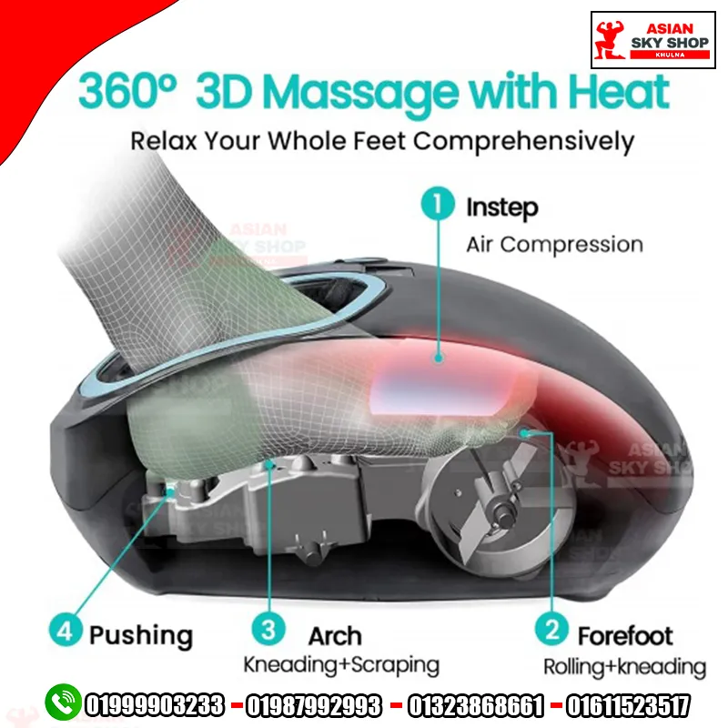 Deep Kneading & Rolling: এর শক্তিশালী রোলার আপনার পায়ের তালুর প্রতিটি গুরুত্বপূর্ণ পয়েন্টে মাসাজ দেয়, যা রক্ত সঞ্চালন (Blood Circulation) বৃদ্ধি করে।