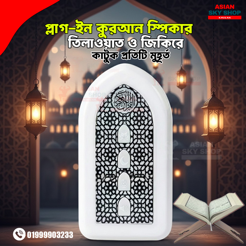 আপনার ঘর বা অফিসের পরিবেশে আধ্যাত্মিক প্রশান্তি ফিরিয়ে আনতে আমরা নিয়ে এলাম আধুনিক প্রযুক্তির ইসলামিক প্লাগ-ইন কুরআন স্পিকার। এটি শুধুমাত্র একটি স্পিকার নয়, বরং আপনার পরিবারের জন্য একটি দ্বীনি আমেজ তৈরির মাধ্যম।