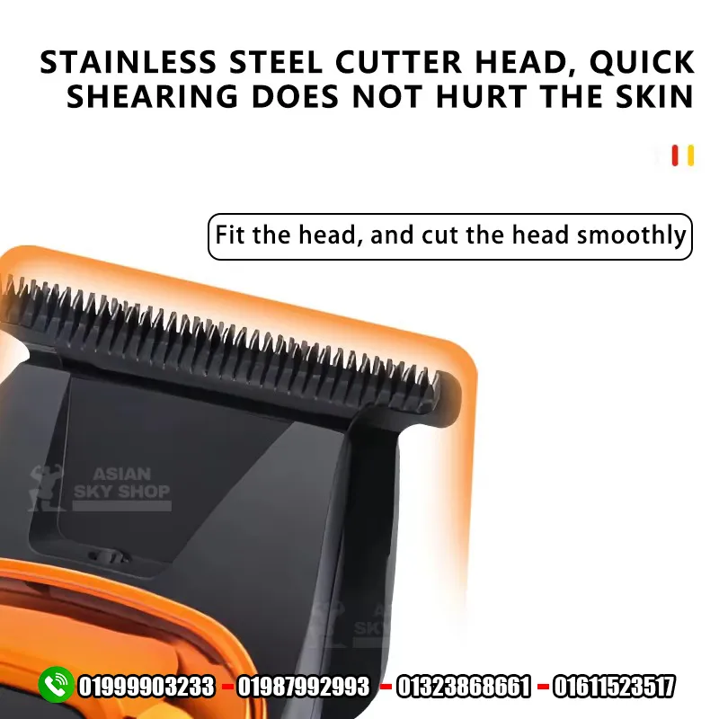 Stainless Steel Blade: এর ব্লেডগুলো স্টেইনলেস স্টিলের তৈরি, যা দীর্ঘস্থায়ী ধারালো থাকে এবং ত্বকের কোনো ক্ষতি না করেই স্মুথ কাটিং নিশ্চিত করে।