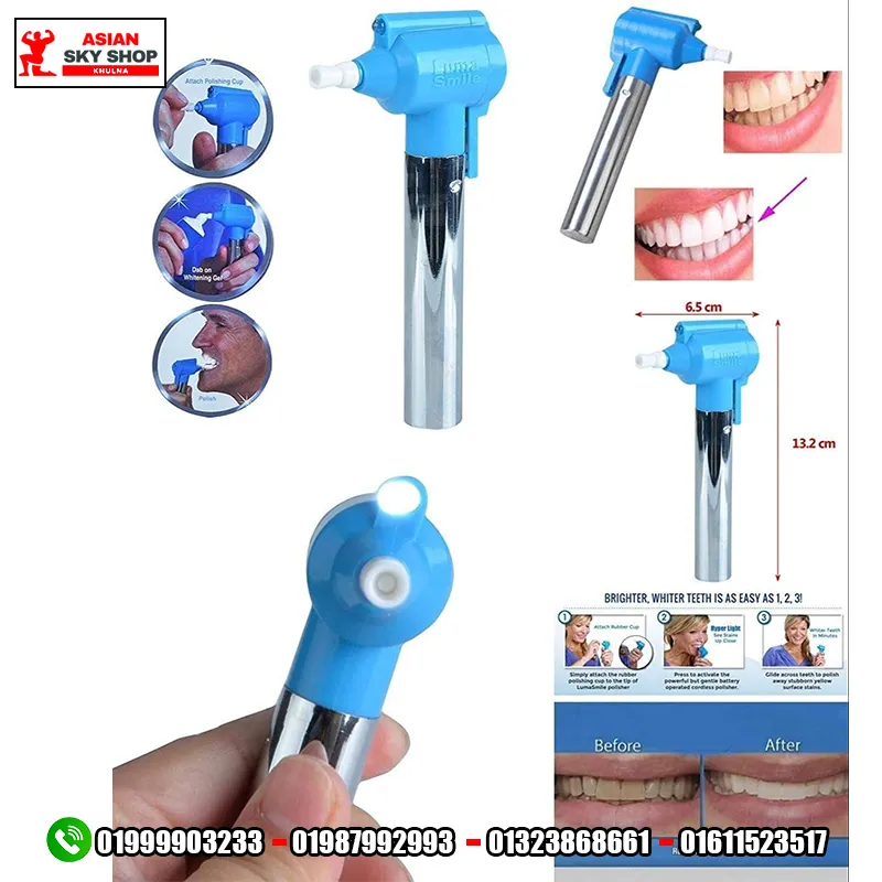 দাঁতের হলদেটে ভাব বা জেদি দাগ নিয়ে চিন্তিত? কফি, চা, কিংবা ধূমপানের কারণে দাঁত কি স্বাভাবিক উজ্জ্বলতা হারিয়েছে? আপনার জন্য আমরা নিয়ে এসেছি Luma Smile Teeth Polisher, যা আপনাকে দিবে ডেন্টিস্টের কাছে যাওয়ার মতো প্রফেশনাল ফিলিং এখন নিজের ঘরেই।