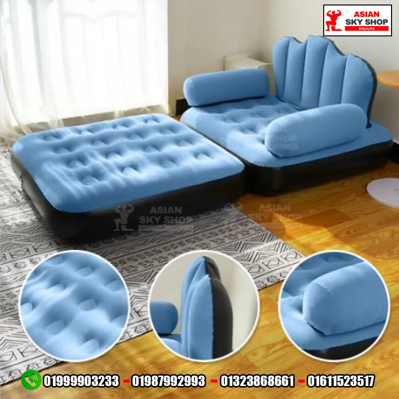 বসার জন্য আরামদায়ক সোফা এবং ঘুমানোর জন্য সফট বেড—সব পাবেন একটি প্রোডাক্টেই! এই Inflatable Sofa টি মূলত একটি মাল্টি-পারপাস ফার্নিচার যা আপনি ঘরে বসে রিল্যাক্স করতে বা ক্যাম্পিং ট্রিপে বিছানা হিসেবে ব্যবহার করতে পারবেন। এর বিশেষ আকর্ষণ হলো এর L-Shaped Armrest এবং খুব দ্রুত বাতাসে ফুলিয়ে ফেলার সুবিধা।