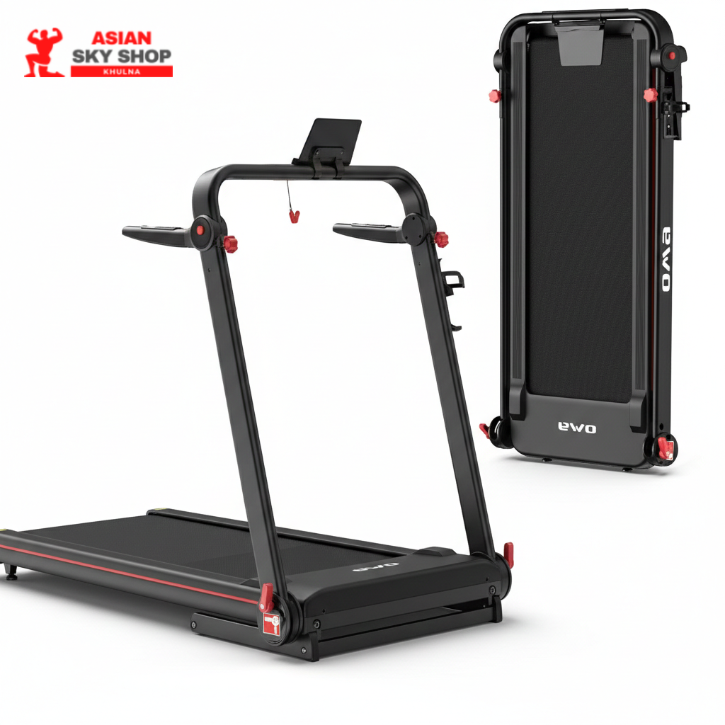 OMA 1017EB Folding Treadmill for Home একটি আধুনিক, কমপ্যাক্ট ও শক্তিশালী হোম-ইউজ ট্রেডমিল, যা দৈনন্দিন কার্ডিও ওয়ার্কআউটের জন্য আদর্শ। এর ১৮০° ফোল্ডিং ডিজাইন থাকার কারণে ভাঁজ করলে এটি দেয়াল, সোফার নিচে বা ছোট জায়গায় সহজেই রাখা যায়—আধুনিক বাসার জন্য একদম উপযুক্ত।