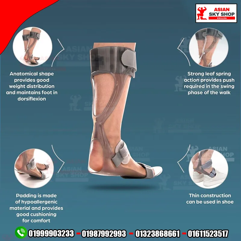 Leaf Spring Action: এর বিশেষ ‘লিফ স্প্রিং’ ডিজাইন হাঁটার সময় পায়ের পাতাকে উপরের দিকে তুলে ধরে (Dorsiflexion), যা স্বাভাবিকভাবে হাঁটতে সাহায্য করে।