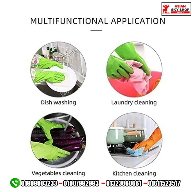 . ত্বকের সুরক্ষা: ডিটারজেন্ট বা কেমিক্যালের ক্ষতিকর প্রভাব থেকে হাতকে রক্ষা করে।
