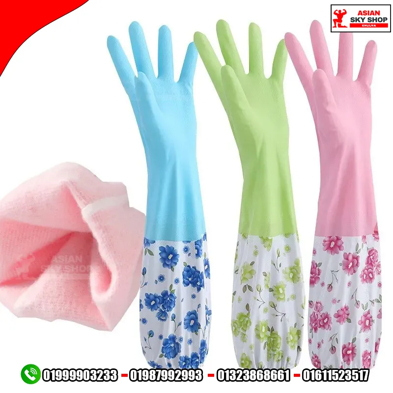 ঘরের নিত্যদিনের কাজ যেমন—বাসন মাজা, কাপড় ধোয়া কিংবা সবজি পরিষ্কার করা—সবকিছুতেই আপনার হাতকে পানি, ডিটারজেন্ট এবং ময়লা থেকে সম্পূর্ণ নিরাপদ রাখতে আমরা নিয়ে এসেছি Waterproof Long Sleeve Cleaning Gloves। এর লম্বা স্লিভ এবং সুন্দর ফ্লোরাল ডিজাইন আপনার কাজকে করবে আরও সহজ ও আরামদায়ক।