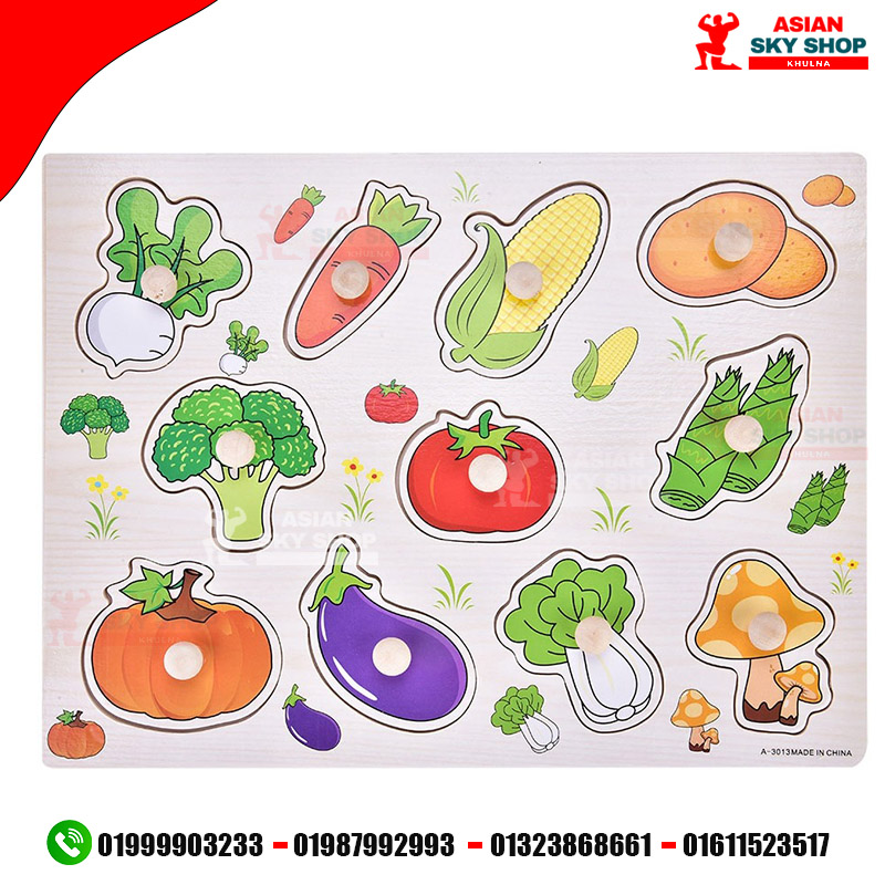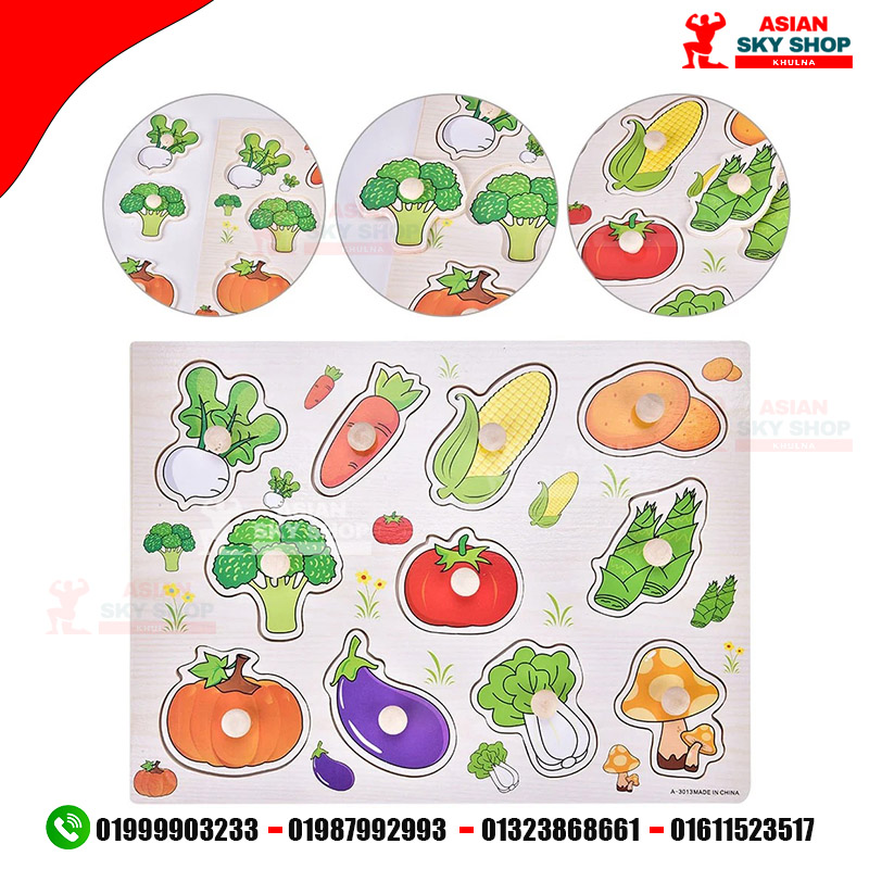 এই প্রিমিয়াম কোয়ালিটির কাঠের পাজলটি শিশুদের প্রাথমিক শিক্ষার জন্য একটি অসাধারণ মাধ্যম। এটি শিশুদের রঙের সাথে পরিচয় করানো এবং বিভিন্ন সবজি চিনতে সাহায্য করার পাশাপাশি তাদের মেধার বিকাশে ভূমিকা রাখে।